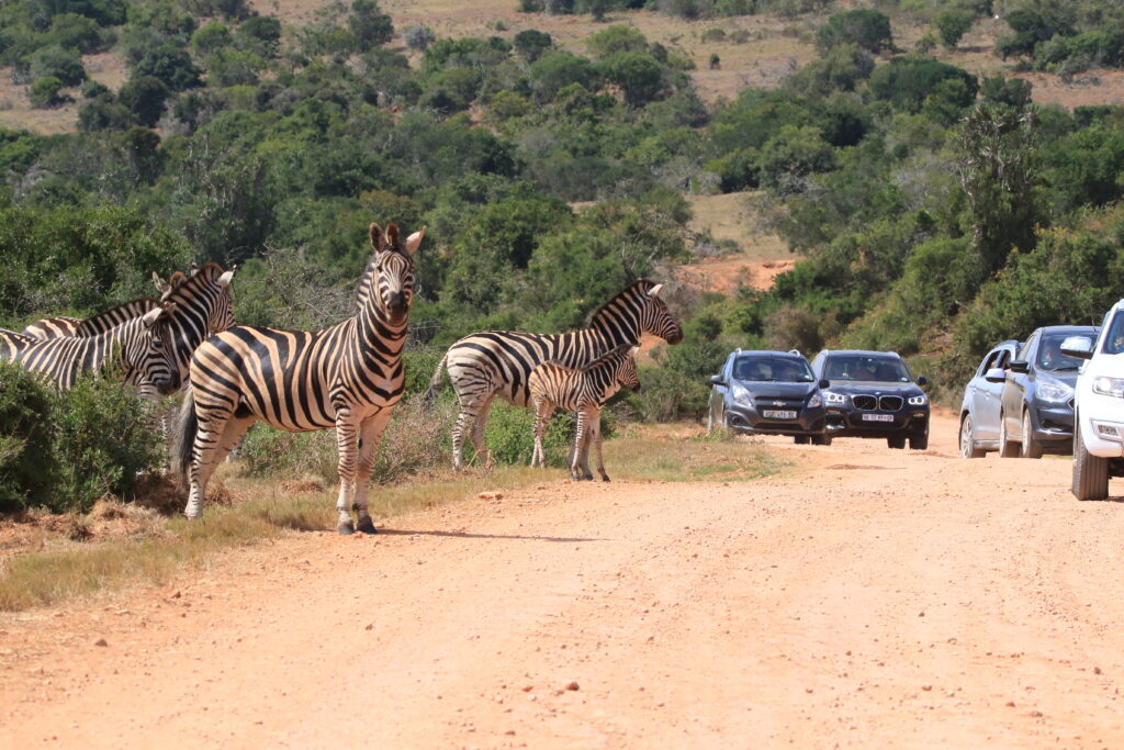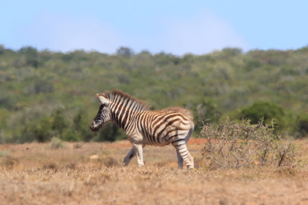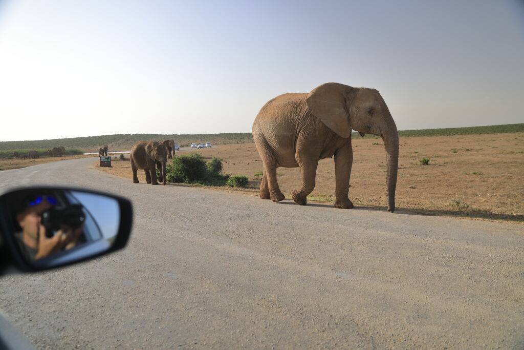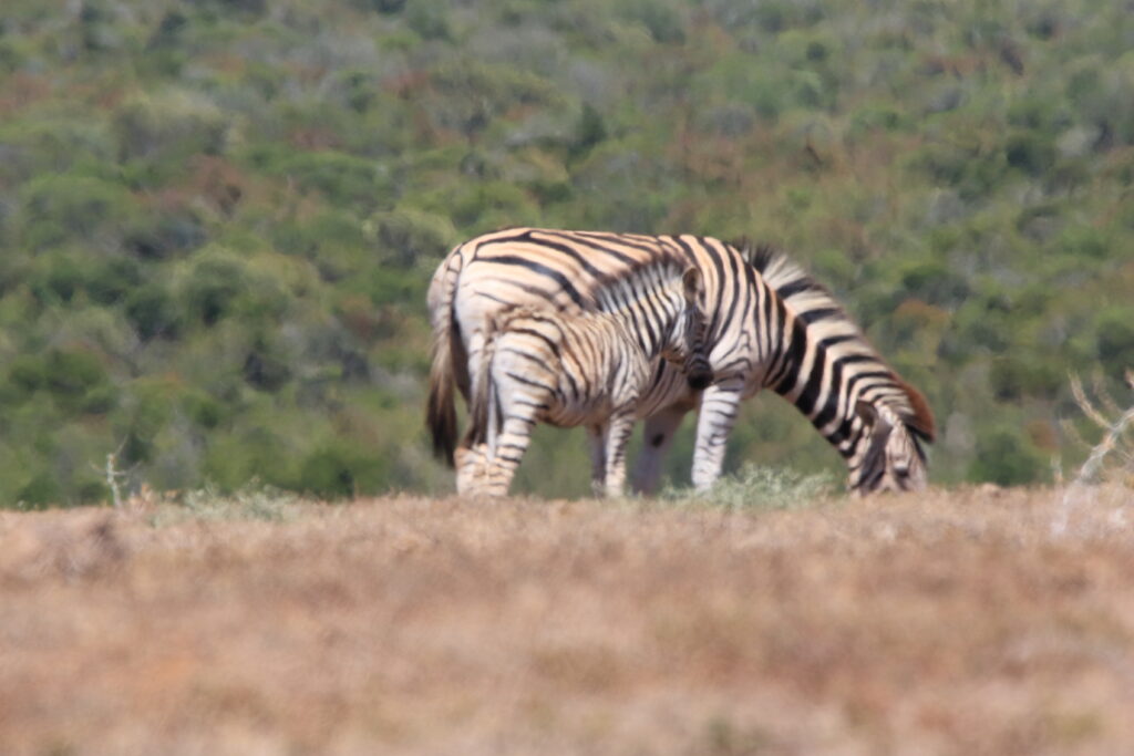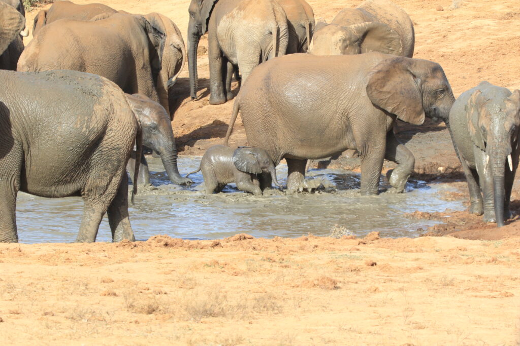 Guess what animals are prevalent in Addo Elephant National Park? I hope the name was sufficiently clear. There are several hundred elephants in the park so it is almost impossible to not see them while visiting. Because this is the middle of summer in the southern hemisphere, it is getting dry. That means most of the animals stay close to a water hole. The elephants especially like water holes so they can keep themselves cool. It’s fun to see them rolling around in the water and mud as they try to cool off. I was watching a large group that were submerging themselves in the deep part of the pond. As they were walking out, the little baby appeared.