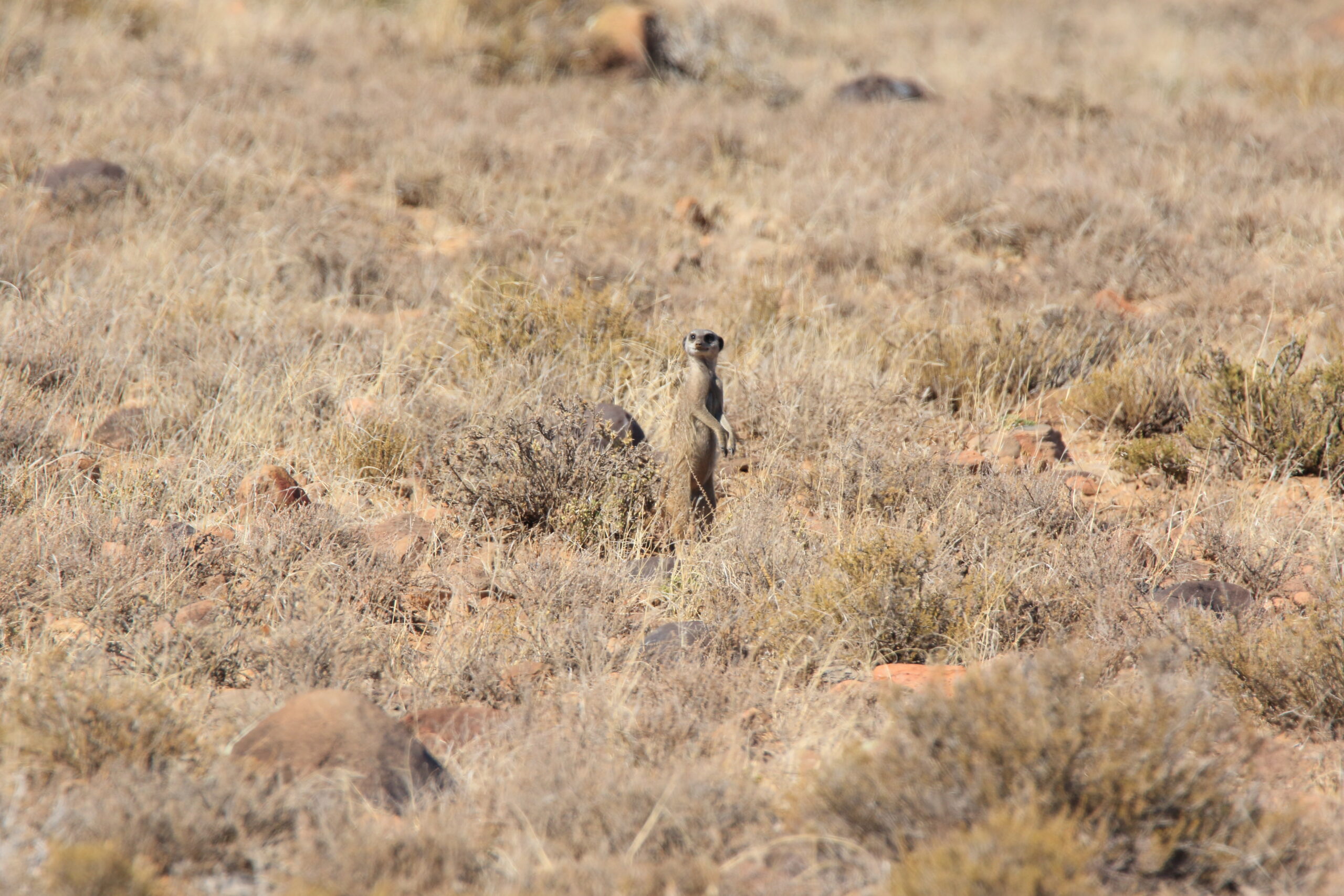 When I rolled into Port Elizabeth on Christmas evening, I had a couple of options. Relax for a couple of days with basically nothing to do, or drive up to visit a couple of national parks. What tipped the scales in favor of the parks? Meerkats. When I saw meerkats listed among the wildlife at Camdeboo, I just had to go. Didn’t see them on my first day in the park. But I was lucky enough to see a family of them on the second day. Like the newborn reedbuck, they were far from the road. They’re not very big, so the photos aren’t great. But it was a lot of fun watching them run around. The multitude of nature documentaries featuring meerkats don’t have to fake that level of cuteness. What you see on TV is just what they’re like in the wild.