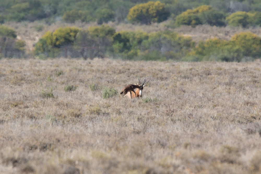 I was driving through the very northern part of the game viewing area when I spotted a reedbuck far from any other animals. And by far, I mean close to a kilometer. It was also not close to the road. These photos are at full extension of my big lens and the animals still look small because of the distance. Heat shimmer over the ground because of the air temperature also doesn’t help for shooting sharp photos.