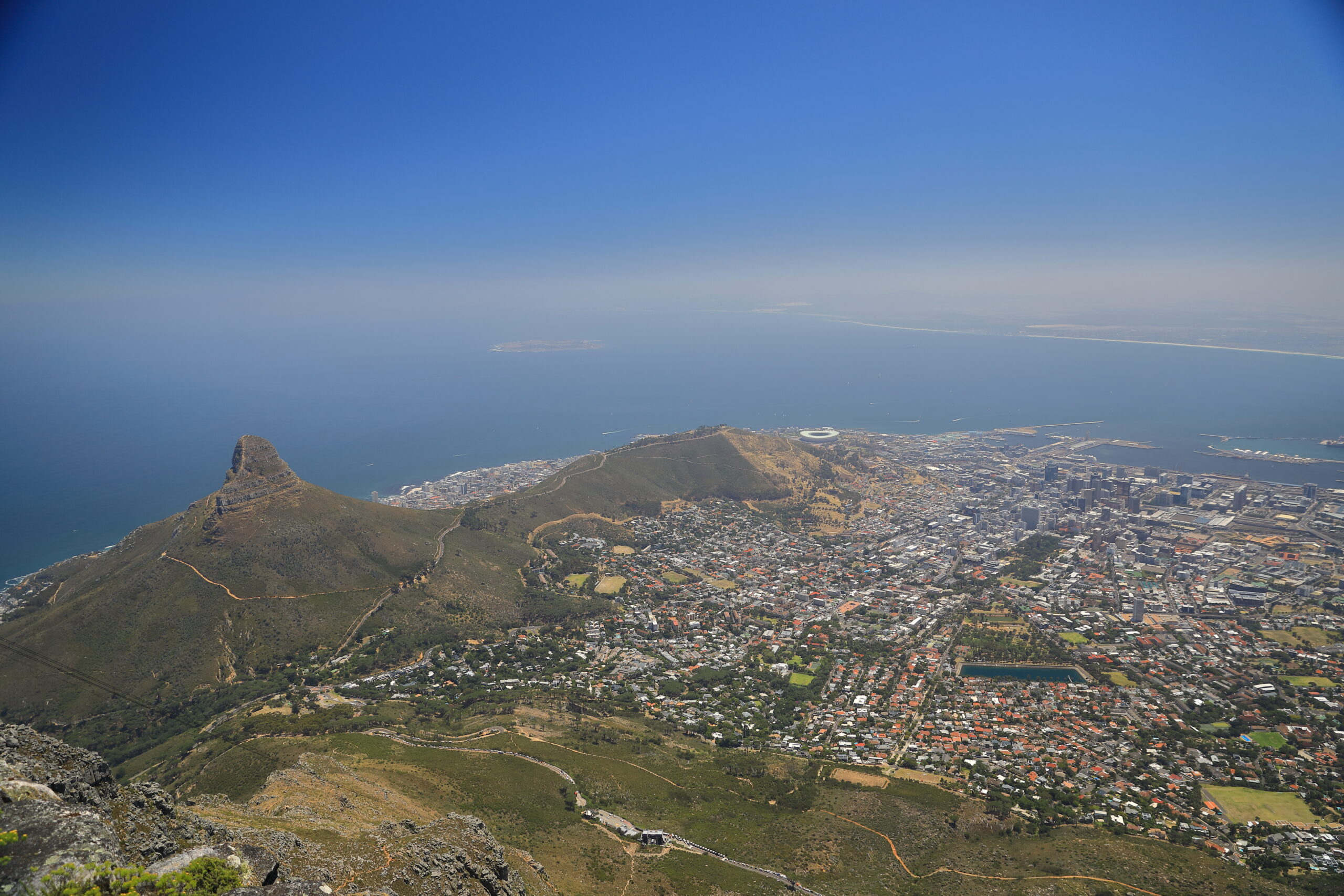 South Africa’s history with slavery is just as horrific as the US, and like the US the impacts are still felt today. Because apartheid ended relatively recently, some of those impacts are still living memories. Please take a look at the photo with the view of Cape Town from Table Mountain. Look up and left from Cape Town to see a large island in the bay. That is Robben Island, which is one of the places Nelson Mandela was held as a political prisoner prior to his release.